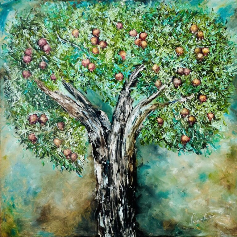 The pomegranate It was the nightingale and not the lark that pierced the fearful follow of thine ear nightly she sings onyon pomegranate tree William Shakespeare Size 140 x 120 cm Artist Natassa Nikoletou Technique Oil on canvas SOLD Send Request