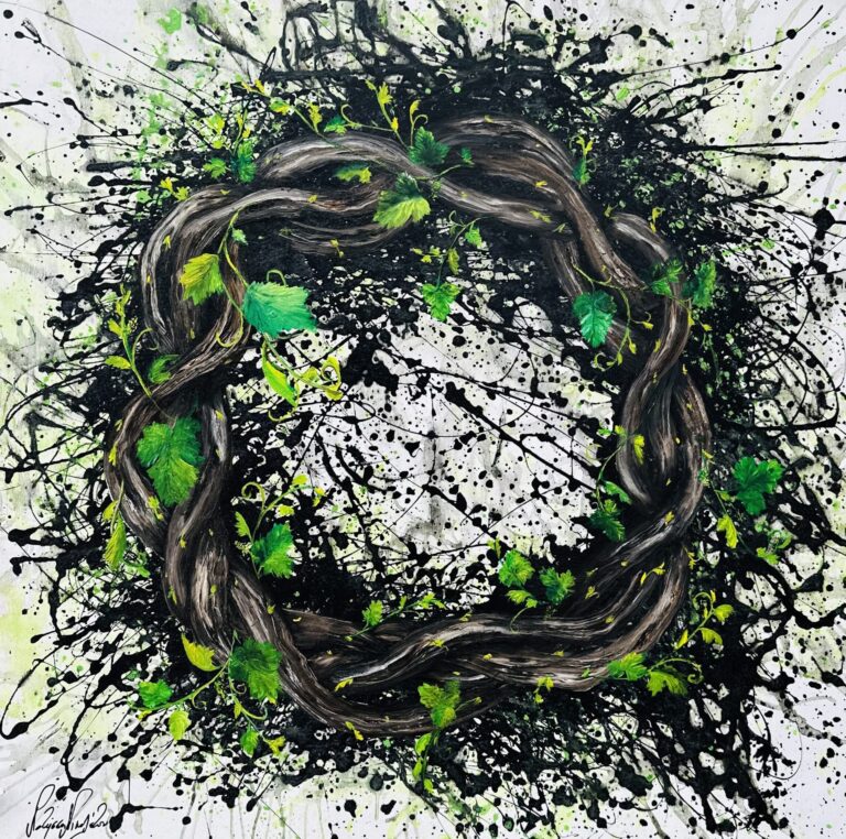 Vineyard If you take Greece apart,in the end you will be left with an olive tree,a vineyard and a boat…which means that with these itemsyou can rebuild Greece… Odysseas Elytis Size 80 x 80 cm Artist Natassa Nikoletou Technique Oil on canvas Price (shipping not included) 1.000 € Send Request